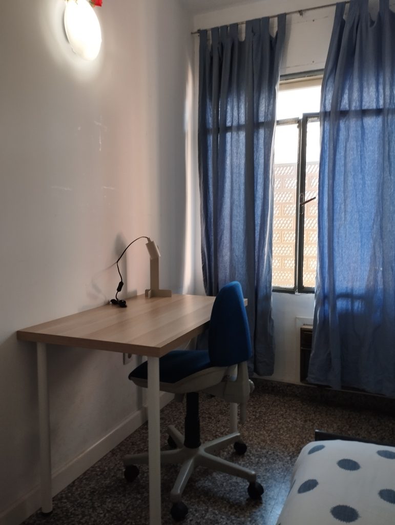 Habitación en piso compartido de estudiantes situado en Vistalegre, un barrio antiguo de ambiente estudiantil con todos los servicios cerca: hospital, farmacia, supermercado, restaurante, etc. A menos de 10 minutos del Campus de la Merced, y a menos de 5 minutos del autobus 39 y tranvía de Plaza Circular que lleva a los campus de Espinardo y UCAM.